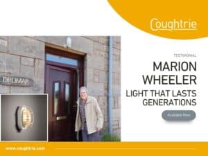 In March of 2022, Brian Wheeler got in touch with us about his mum’s original Coughtrie light fitting. The original SP bulkhead had hung above her door in Elgin for decades but was replaced by a plastic light when it stopped working.